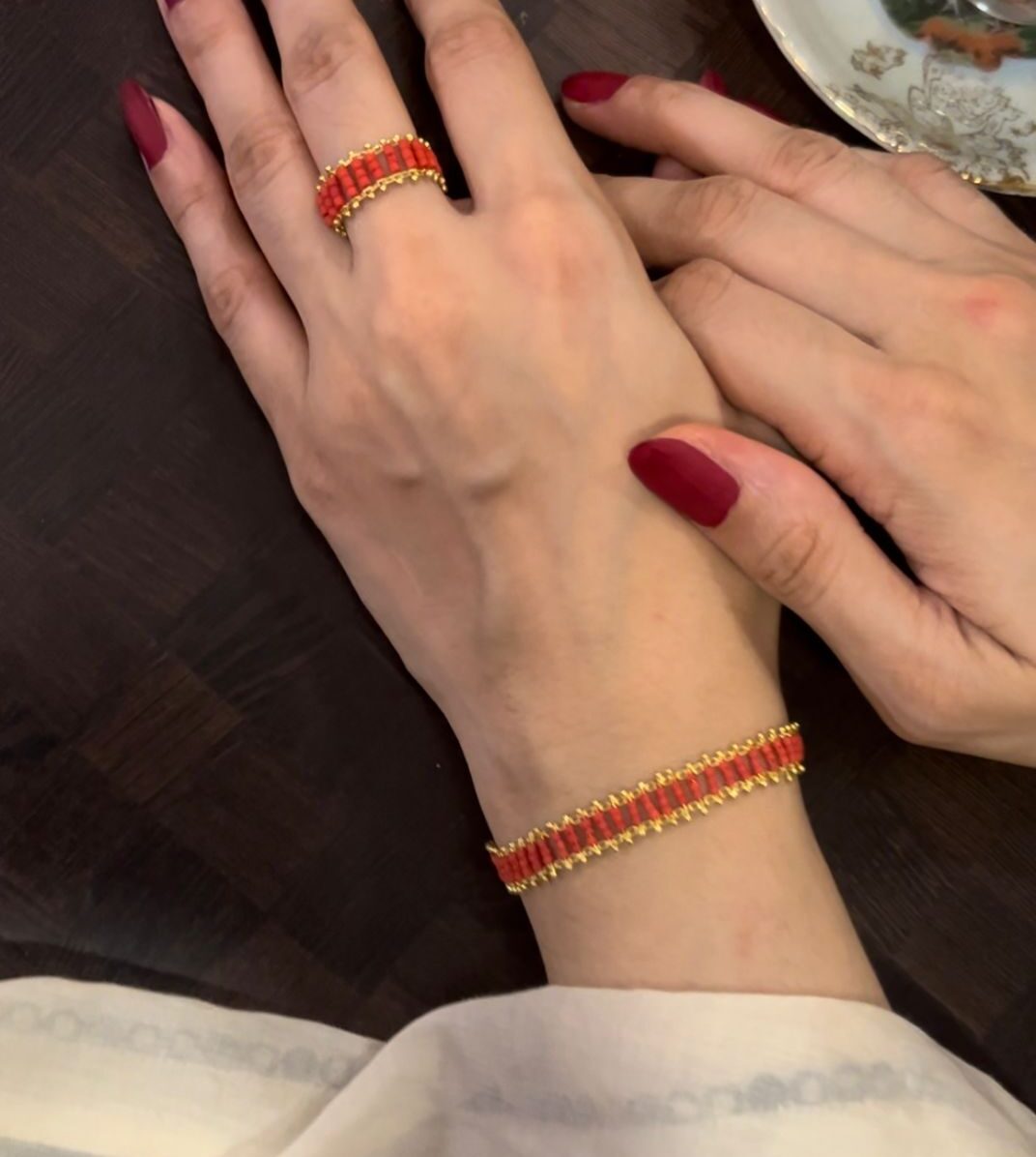 Red Coral Bracelet and Ring Set